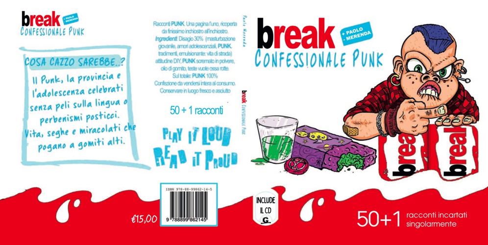 Paolo Merenda è un artista versatile: salta dalla musica alla scrittura con naturalezza e coerenza. Ma non solo, la sua vena camaleontica viene confermata dalla miriade di band, stilisticamente differenti, in cui è coinvolto e dalla notevole produzione letteraria che va dalla saggistica alla narrativa per bambini. Se c’è un’opera, però, che in qualche modo riesce a catturare entrambe le versioni di Paolo (musicista e scrittore) è “Break – Confessionale Punk” (Gonzo Editore), volumetto che al proprio interno contiene 50+1 mini-racconti e un CD.